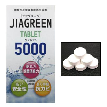 タブレット1錠で4.5Lの次亜塩素酸水を生成できます。![]() ジアグリーン 噴霧器用タブレット5000