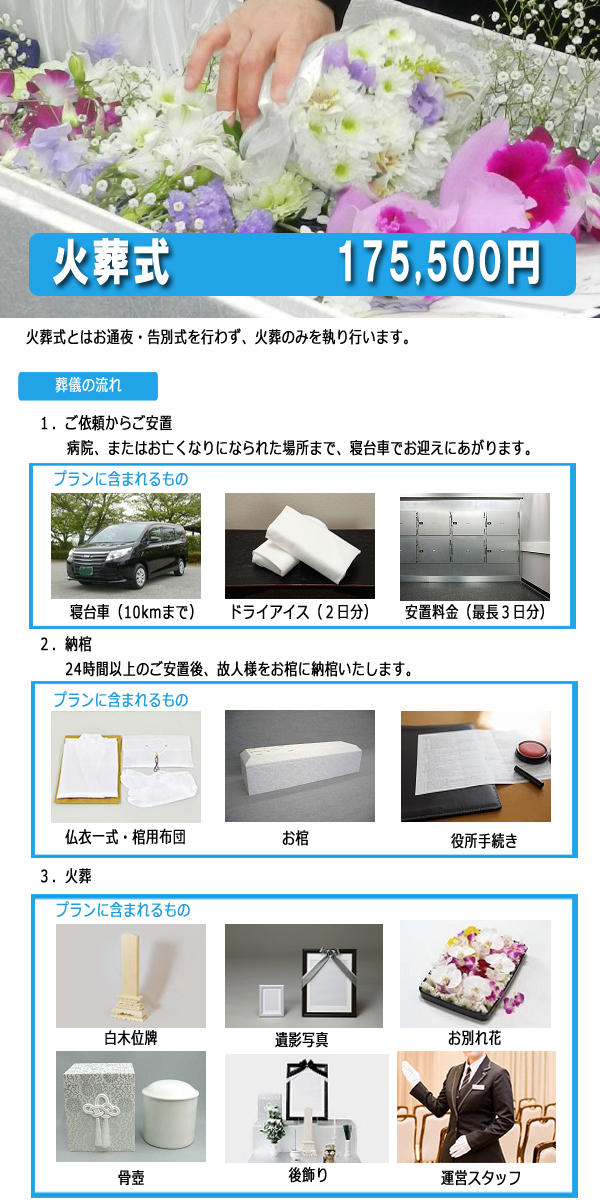 火葬場にて釜入れ時に5〜10分程度、読経いたします。